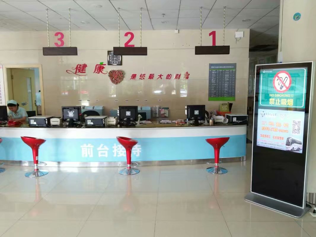 壁掛廣告機(jī),放于電梯口通道,人工咨詢前臺,辦事等候區(qū),可以播放相關(guān)辦事指引流程,以及最新的疾病預(yù)防及治療。